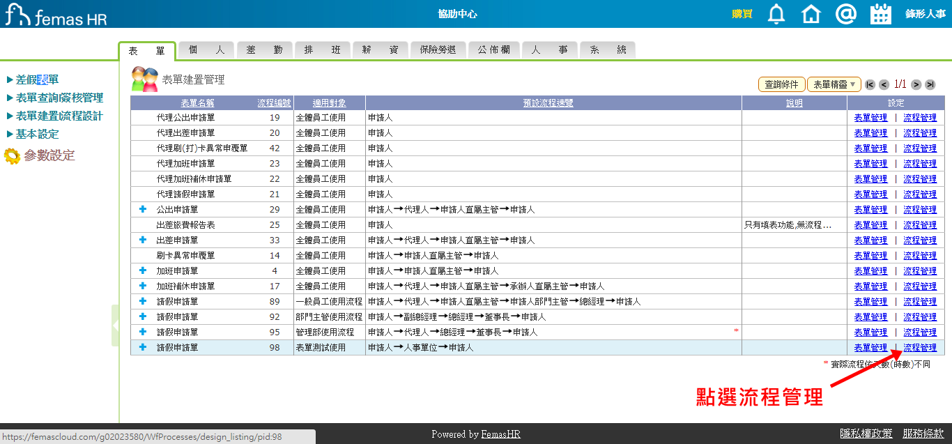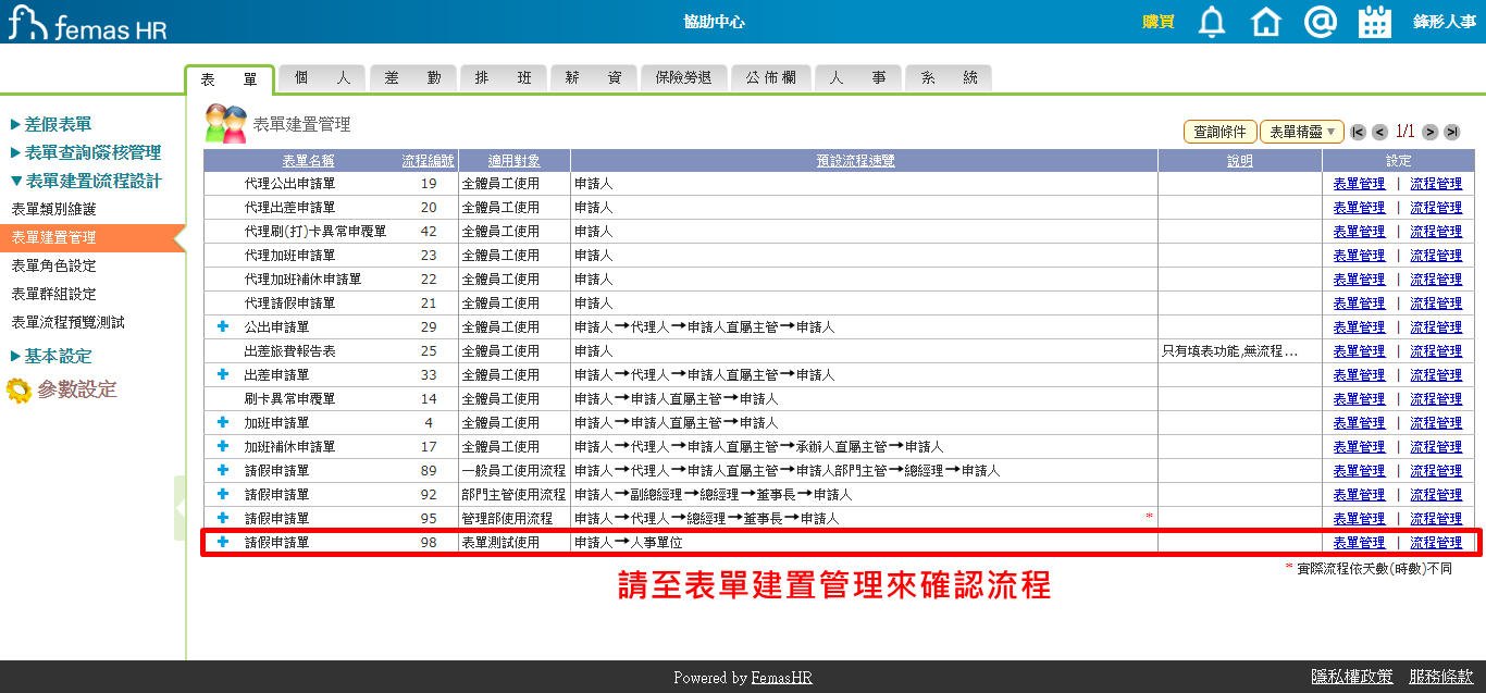 表單→表單建置|流程設計→表單建置管理