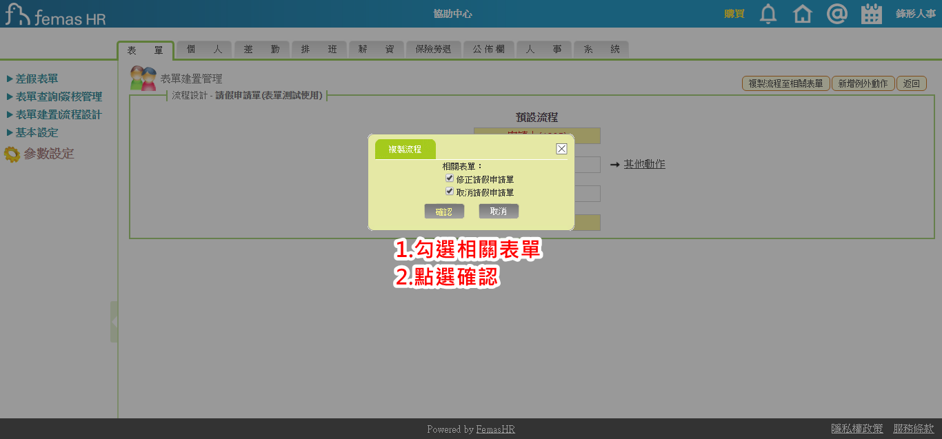 主管代理員工申請請假單時,為什麼畫面跳出「無流程」?該怎麼排除?