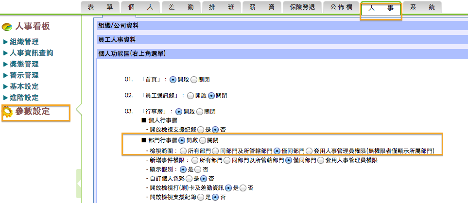 人事→參數設定